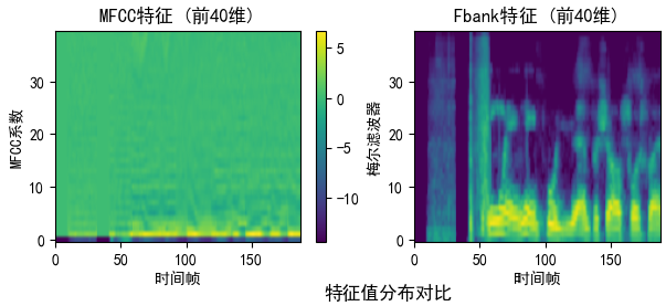 为了提出录音设备差异背景噪音干扰,更好地表征语音数据,我们使用了两种常用的音频特征:MFCC(梅尔频率倒谱系数)和 Fbank。