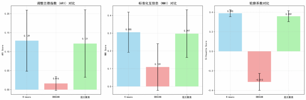 | 聚类算法 | KMeans 是最稳健的选择,层次聚类和 DBSCAN 存在噪声干扰 |