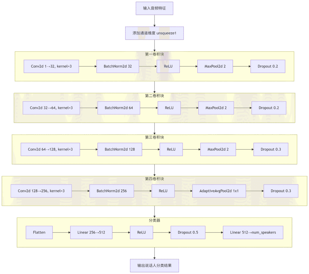 - 信息保留完整:Fbank避免了MFCC的DCT变换信息损失,为CNN提供了更丰富的原始特征,让网络自行学习最佳表示