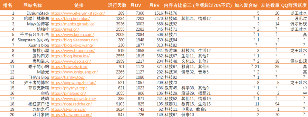 • ElysiumStack运行不到一年,月UV七千三。它做对了三件事:技术教程扎实、情感生活坦诚、社群互动积极。这是平衡的艺术——既给干货,也给真人。