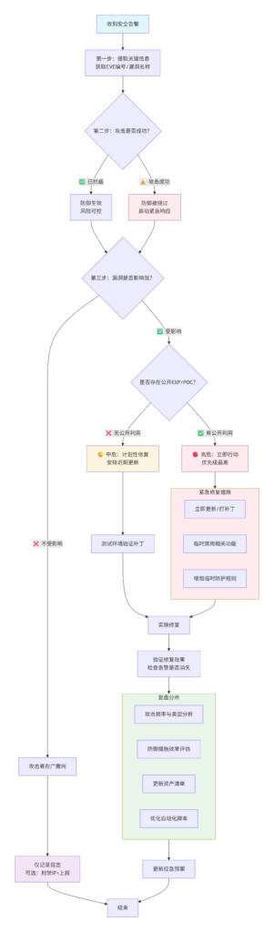 - 对照资产清单:重点看这个漏洞影响哪个服务、哪个版本范围。然后立刻翻回你的资产清单表,核对你的对应服务版本是否在受影响范围内。